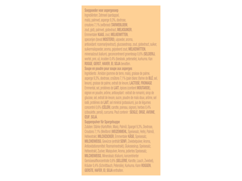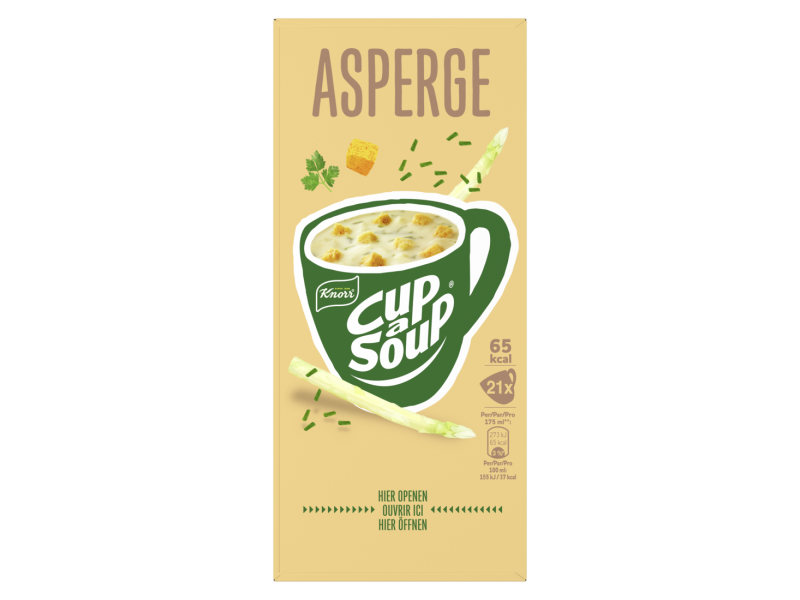 Zo zacht dat je ervan gaat fluisteren. Onze gebonden Aspergesoep geeft je, naast een aangename hoeveelheid Crème fraîche, ook even rust. Ook geschikt voor vegetariërs en voor het kalmeren van druk kwebbelende collega’s. In ieder geval voor een paar minuten.