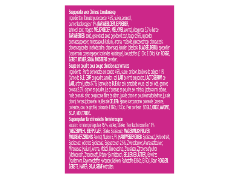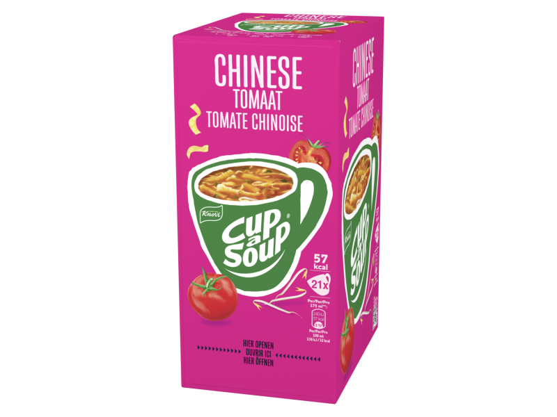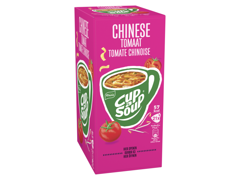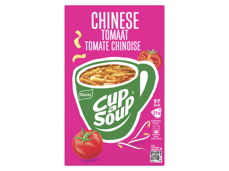 De tomaten komen niet helemaal uit China, dat is niet alleen overdreven, maar ook zinloos. Onze eigen tomaten zijn namelijk net zo goed. Maar het recept is wel Chineser dan Chinees. Mede dankzij de taugé, vermoeden we. Want die zijn we in de Nederlandse soep nog niet tegengekomen. Lekker pittig, lekker zoetig. Naar wens sambal bij