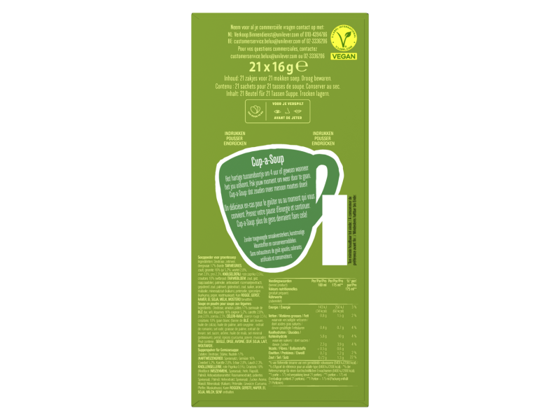 Ouderwets stevig van smaak. Vol met knapperige croutons. Verantwoord en geschikt voor vegetariërs. En dat allemaal in één beker. We waren er zelf ook even stil van.