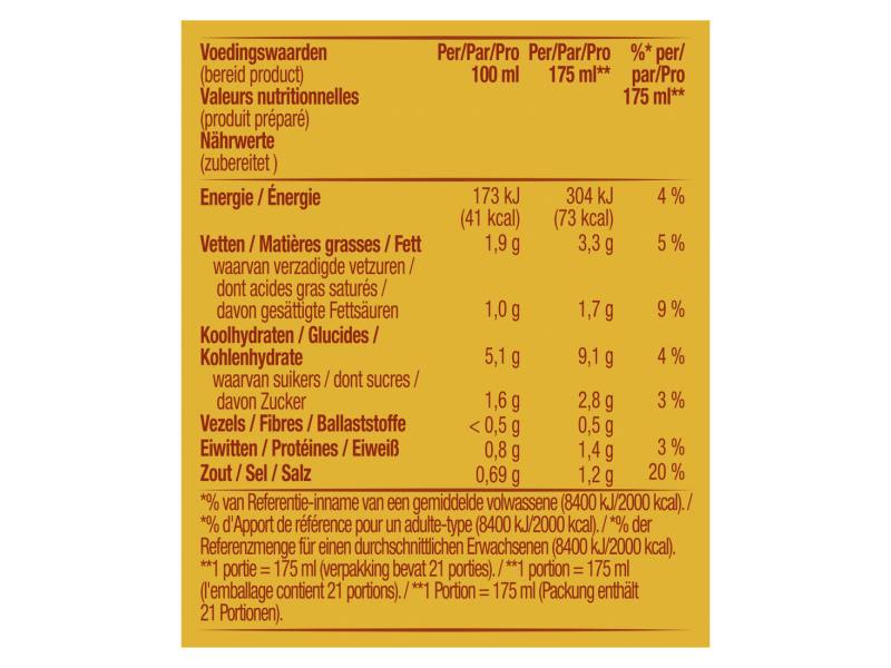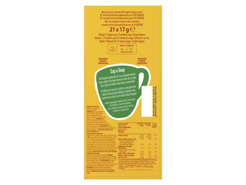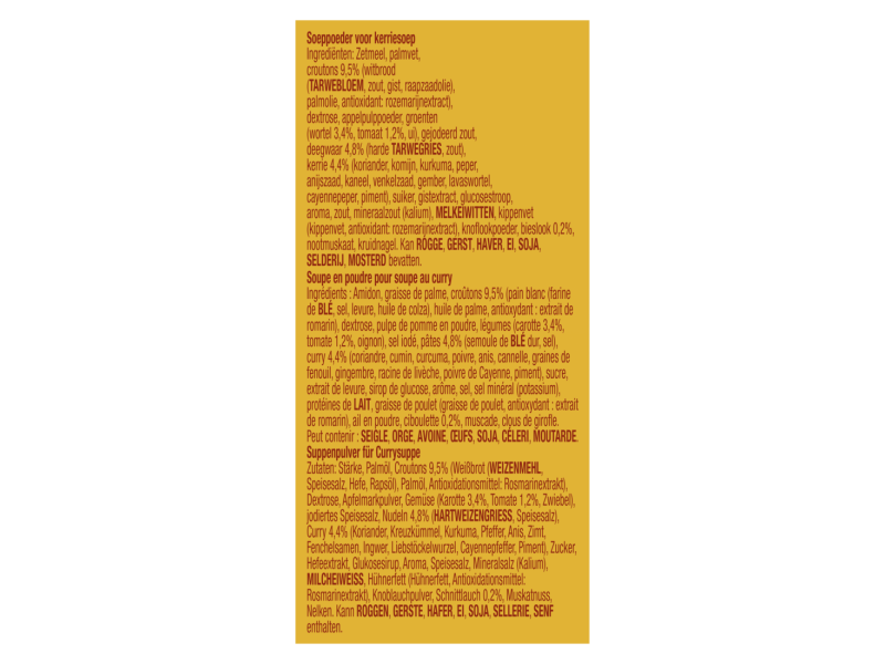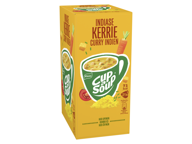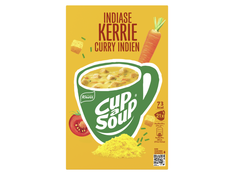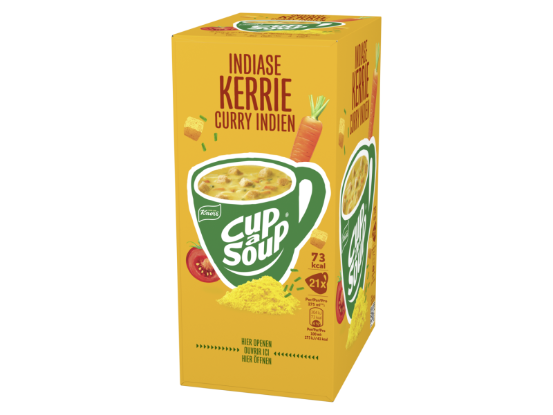 Kerrie is van oorsprong een vrolijk mengsel van verschillende specerijen. In de juiste samenstelling is het eerste wat je na een hap uitbrengt, het woord ”water”. Dat gaan wij je natuurlijk niet aandoen. Cup-a-Soup Kerrie houdt een aangenaam midden tussen pittig en mild. Wel een boost, geen stroomstoot.
