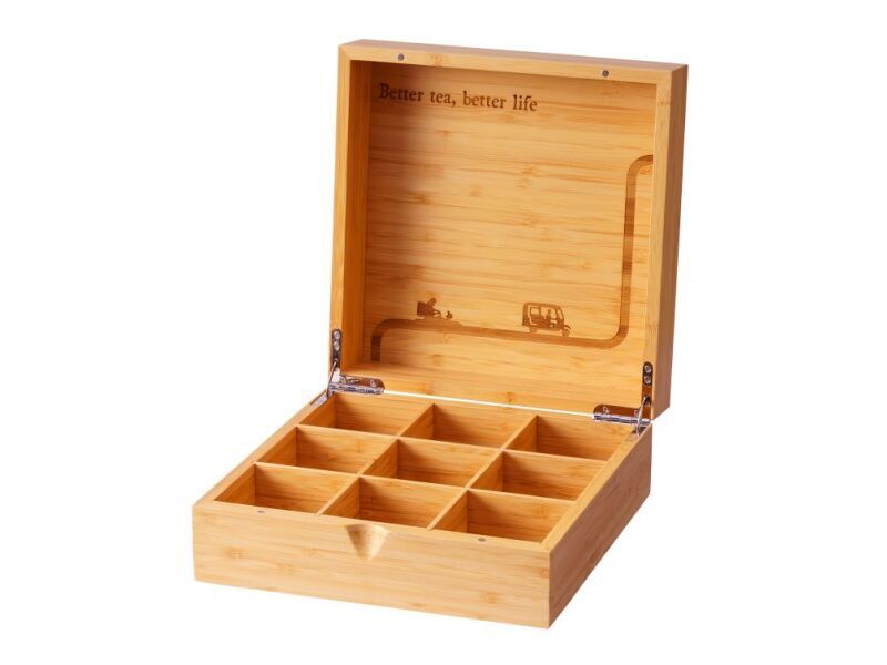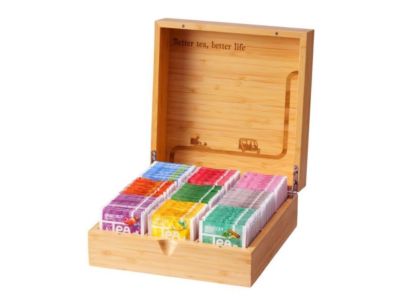 Deze mooie bamboe kist wordt leeg geleverd. De Tea of Life thee varianten vindt u in onze webshop. De afmeting van de kist is: 25x25x11cm (buitenverpakking).